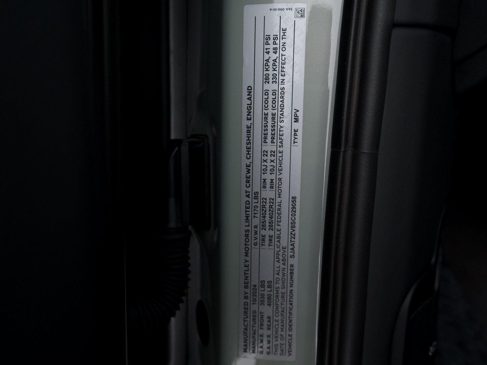 Holman Motorcars of Fort Lauderdale is proud to offer this wonderful 2025 Bentley Bentayga Opalite S V8 with the following features:ABS brakes, Alloy wheels, Compass, Electronic Stability Control, Front Bucket Seats, Front Center Armrest, Front dual zone A/C, Heated door mirrors, Heated front seats, Heated rear seats, Illuminated entry, Low tire pressure warning, Navigation System, Power Liftgate, Power moonroof, Power passenger seat, Premium Leather Seat Trim, Rear dual zone A/C, Remote keyless entry, Split folding rear seat, Traction control. 2025 Bentley Bentayga Clean CARFAX.Certified. Certified By Bentley Details: * Roadside Assistance * 79 Point Inspection * Warranty Deductible: $0 * Transferable Warranty * 1-year/Unlimited Miles in addition to any remaining new Vehicle Limited Warranty. New Vehicle Limited Warranty is for 3-years/unlimited mileage, from the date of the original vehicle sale. Includes 24/7 Roadside Assistance program. Access to world of Bentley, including ownership opportunities and experiences.